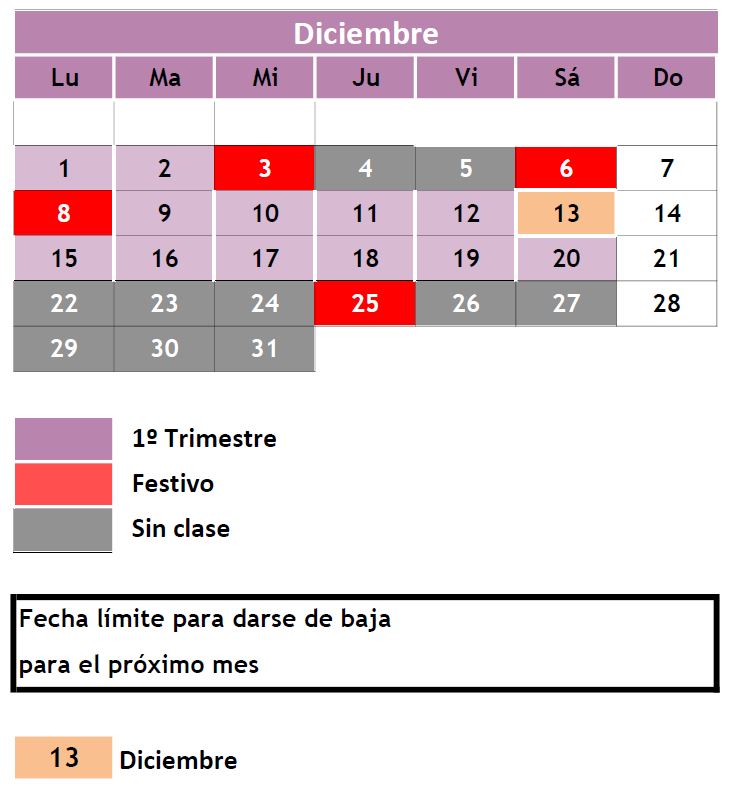 - Baja: debe ser notificada antes del 13 de diciembre.