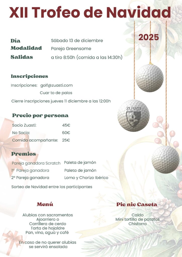 El 20 de diciembre celebramos la Carrera de Navidad, una cita perfecta para disfrutar del deporte, el ambiente festivo y la naturaleza antes de las fiestas. Es una oportunidad única para recorrer el club por dentro y descubrir algunos de los rincones más bonitos del campo de golf, un auténtico privilegio para quienes no son jugadores habituales.
